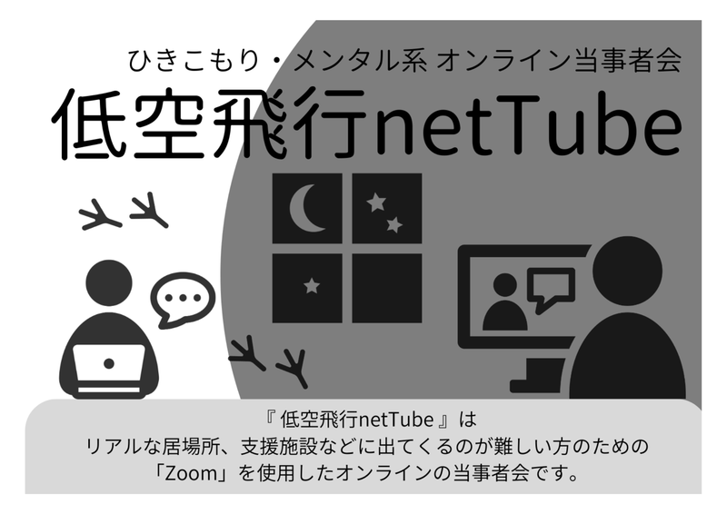 現地まで出てこられない当事者の入り口としてオンライン当事者会の必要を感じ、協力者と共に低空飛行netTubeを立ち上げる。