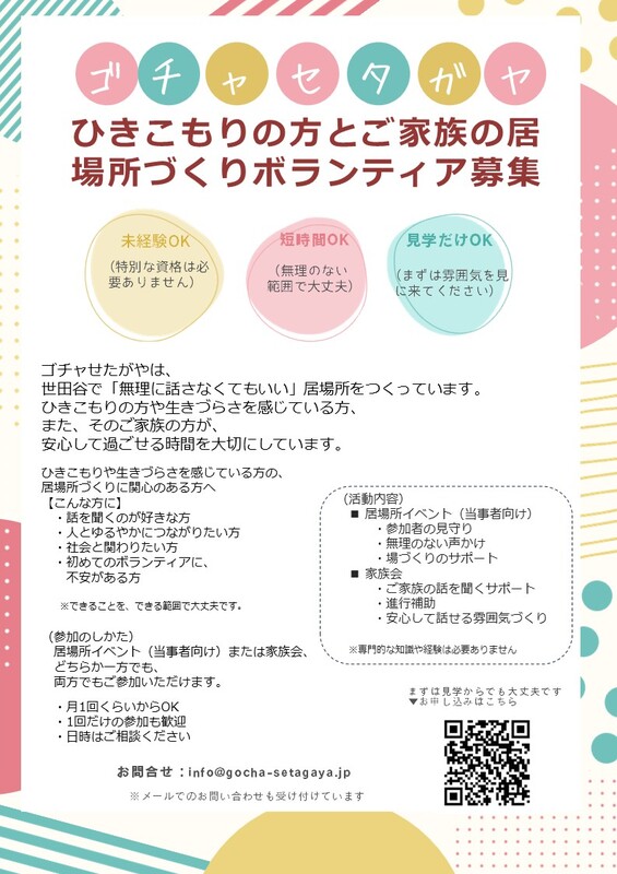 ひきこもり・発達障害の方の居場所づくり/家族会ボランティア募集